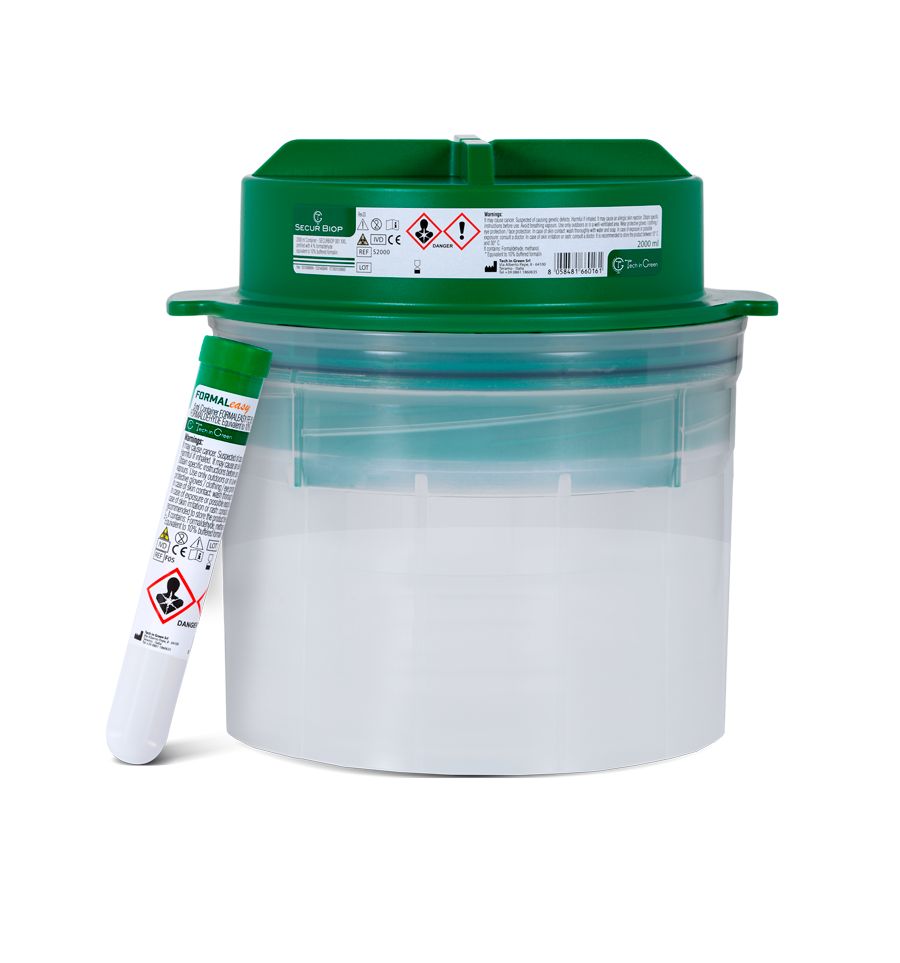 SecurBiop® and FormalEasy®, are our innovative solutions based on a patented closed-system technology, designed to make the handling of biopsy samples safer for healthcare professionals. This system eliminates any exposure to formalin—both direct (by contact) and indirect (through vapors)—which is necessary for sample fixation. Our products combine functionality and protection, always with full respect for the environment. Because better health is only possible in a healthier world.