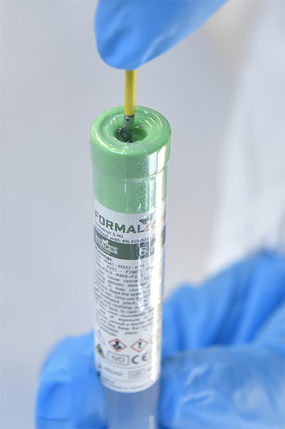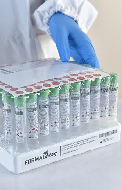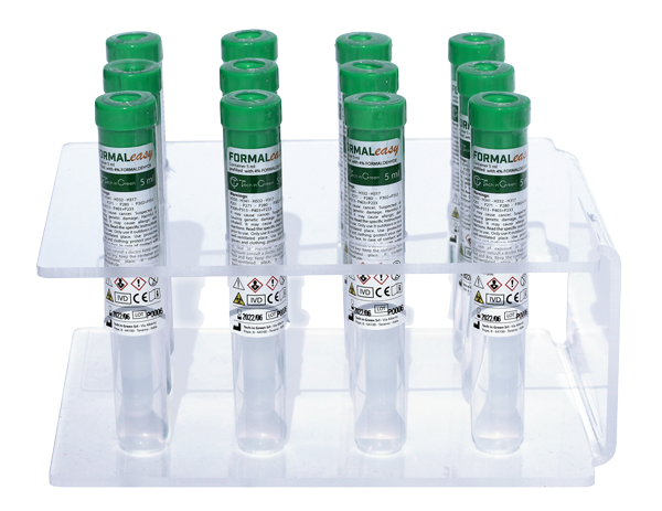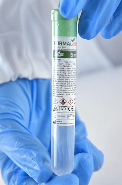 The FormalEasy® test tube is specifically designed for small biopsy specimens collected using forceps or biopsy needles. It comes pre-filled with 10% neutral buffered formalin.