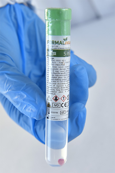 Thanks to its special properties, the polymer cap prevents any leakage of formalin.