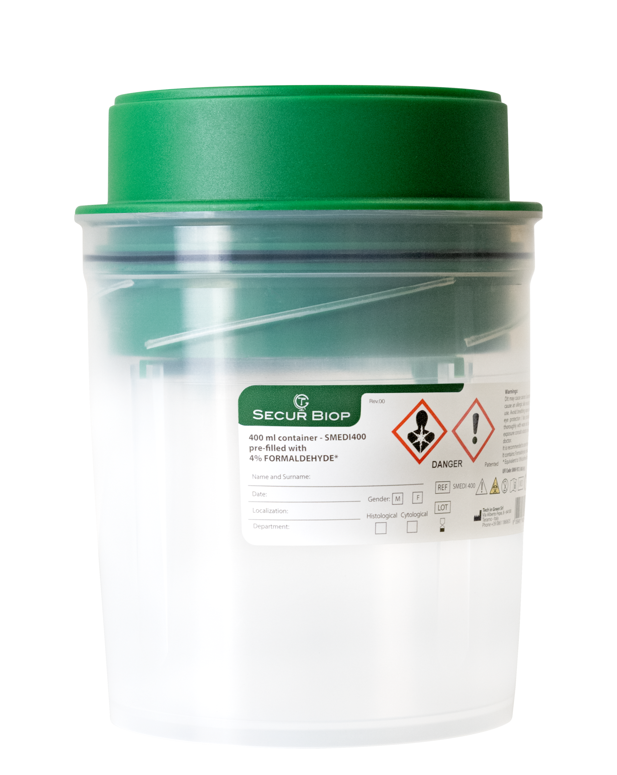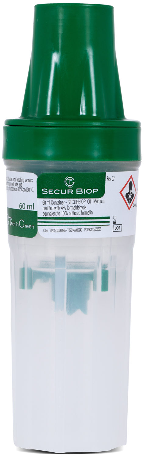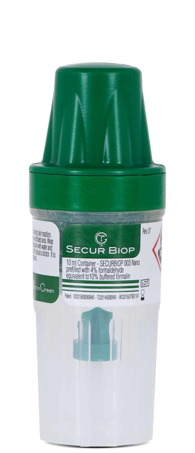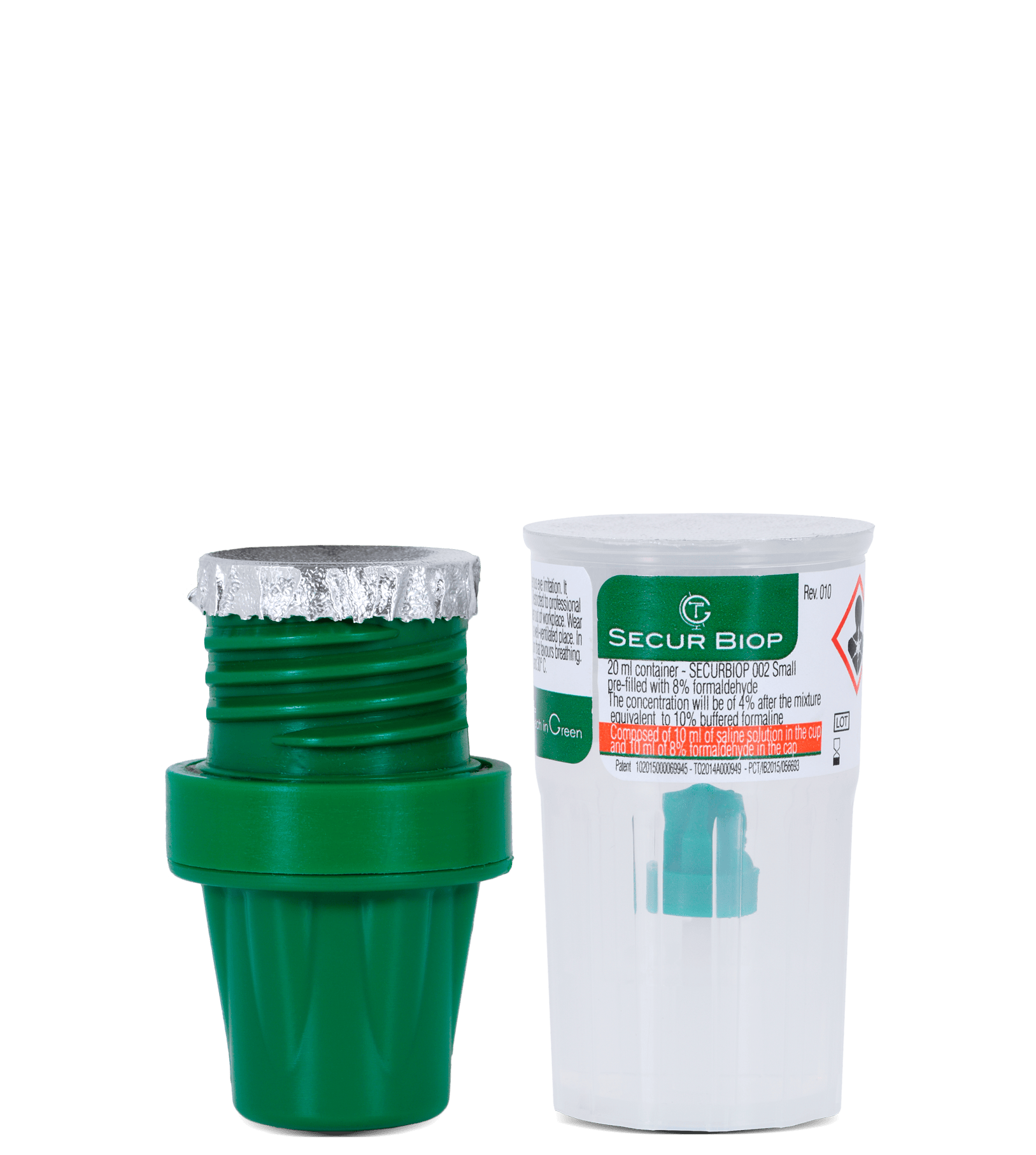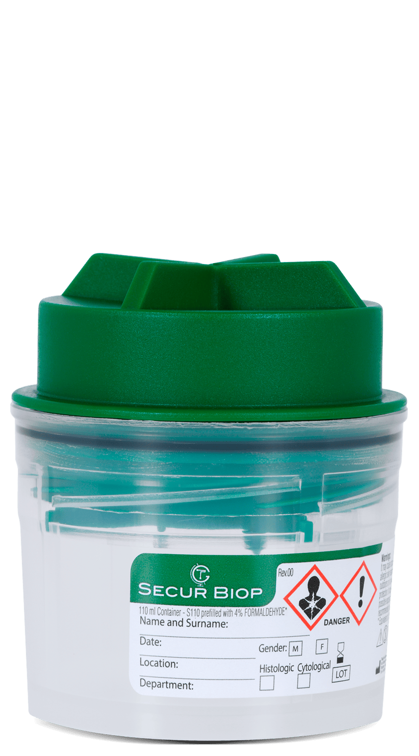 SecurBiop® and FormalEasy® represent the only complete range of containers for the preservation and transport of biopsy samples that offers total safety for healthcare professionals. Both systems are specifically designed to protect users from direct (liquid) and indirect (vapor) exposure to formalin—a substance essential for preserving biopsy samples, but highly toxic to those exposed to it.